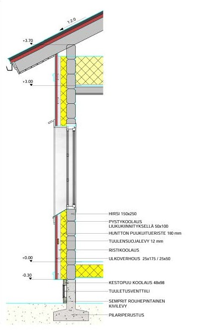 Mikäli rakennus toteutetaan tuulettuvalla alapohjalla, myös alapohjassa käytämme puukuitueristettä. Yläpohja on aina puukuitueristeellä.